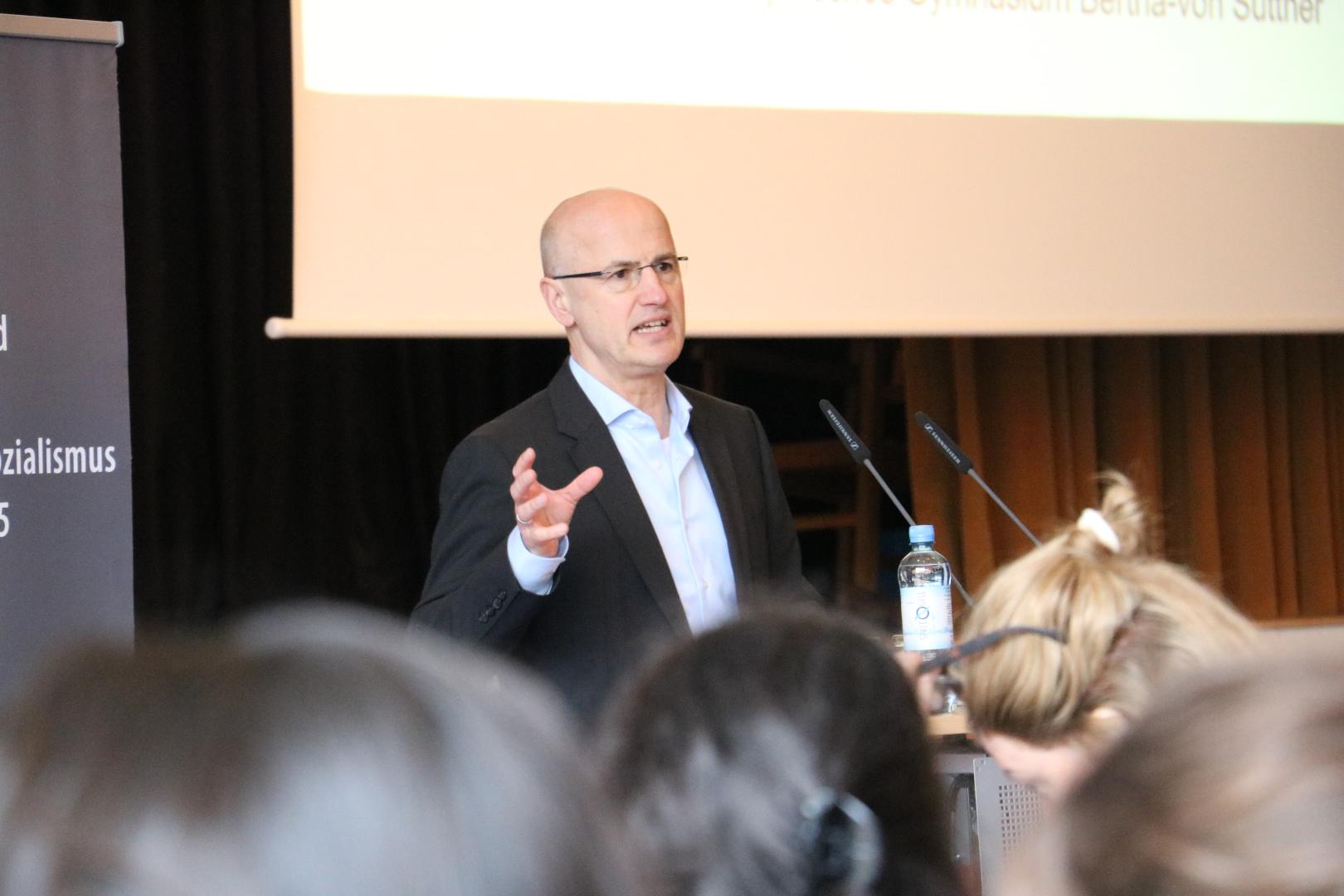 Insgesamt machte die Veranstaltung ganz deutlich, wie ausgeprägt der Bezug zwischen Geschichte und Gegenwart ist. In der historischen Rückschau zeigen sich gleichsam Relevanz und Fragilität unserer freiheitlichen Ordnung: Sie muss von überzeugten Demokratinnen und Demokraten gemeinsam gestaltet werden. Der Vormittag am Bertha-von-Suttner-Gymnasium stimmte durch die engagierte und geschichtsbewusste Schülergruppe optimistisch, dass dieser Anspruch fortgeführt wird.