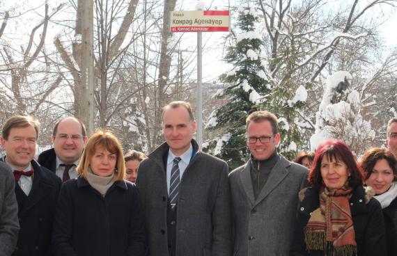 Преименуването беше обявено официално в рамките на малко тържество. Малко преди това бяха сменени табелките на улицата. Почетни гости бяха зам.-външният министър Христо Ангеличин и кметът на София Йорданка Фандъкова. Двамата изтъкнаха заслугите на Аденауер като голям европеец и благодариха за продължителната подкрепа на фондацията в България.