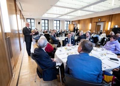 Prof. Dr. Lammert, Vorsitzender der Konrad-Adenauer-Stiftung und des Freundeskreises, erinnerte in seiner Lunch Speech an das vor 75 Jahren verabschiedete Grundgesetz, eine der ältesten geltenden Verfassungen in der Welt. Und er mahnte, dass die Verantwortung für den Fortbestand einer Demokratie letztendlich bei den Staatsbürgerinnen und -bürgern liege. Auch die Konrad-Adenauer-Stiftung sei sich ihrer Verantwortung für die Akzeptanz und Vitalität eines demokratischen Gemeinwesens bewusst. Er dankte den Freunden und Förderern für ihre Unterstützung auf diesem Weg. Er endete mit einem Zitat Barack Obamas aus seiner Abschiedsrede: „Die Demokratie ist immer dann am meisten gefährdet, wenn die Menschen beginnen, sie für selbstverständlich zu halten.“
