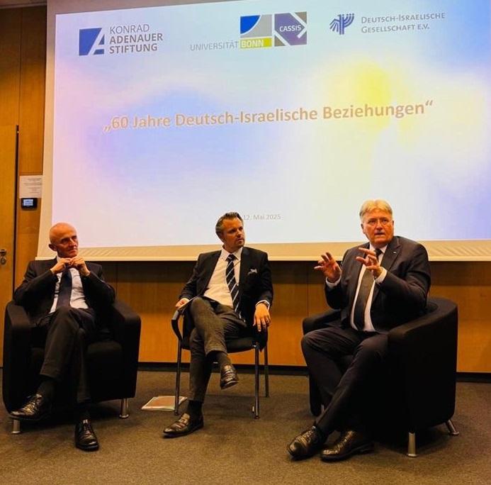 Der Imperativ, Israel bei der Wahrung seines Existenzrechts zu helfen, habe gerade im militärischen und nachrichtendienstlichen Bereich bereits lange vor dem politischen Zäsurjahr 1965 in der Mitte der fünfziger Jahre unter strikter Diskretion begonnen. Selbstverständlich sei dies nicht gewesen: „Auch viele Israelis waren lange gegen eine Zusammenarbeit mit dem ‚Täterstaat‘. Aber die ‚Staatsräson‘ beider Länder brachte sie zusammen. Und durch die praktische Zusammenarbeit sah man Schritt für Schritt auch wieder den Menschen auf der anderen Seite“, konstatierte Dr. Conrad, Islamwissenschaftler und langjähriger Mitarbeiter des Bundesnachrichtendienstes (BND).