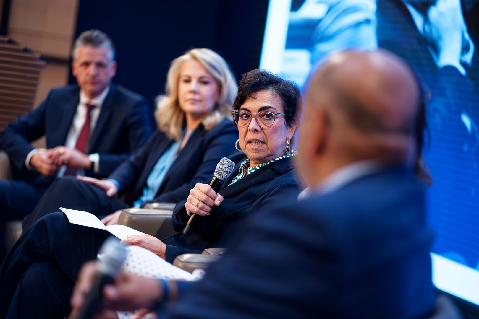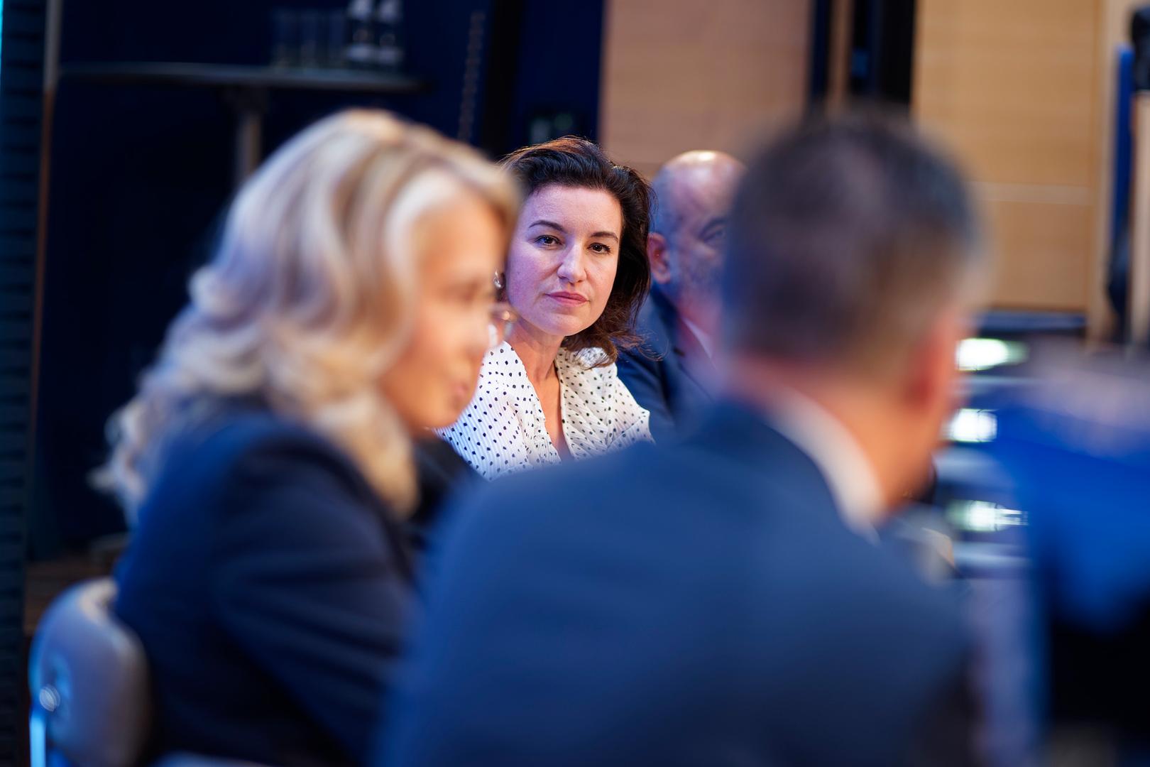Konstruktiv und streitbar diskutierten am Abend Thorsten Frei (CDU) und Dorothee Bär (CSU) mit Vertretern der derzeitigen Regierungsfraktionen, Linda Teuteberg (FDP) und Omid Nouripour (Grüne) – moderiert von Mariam Lau (Die Zeit). Sie demonstrierten, wie politische Konkurrenten auch bei gänzlich unterschiedlichen Positionen fair und respektvoll miteinander streiten können. So sprachen sie nicht nur über umstrittene Themen wie die Migrationspolitik oder das Wahlrecht, sondern auch über das Verhältnis der Abgeordneten und Parteien untereinander, wie AfD und BSW den Politikbetrieb verändert und erschwert haben – und wie die Abgeordneten damit umgehen können.