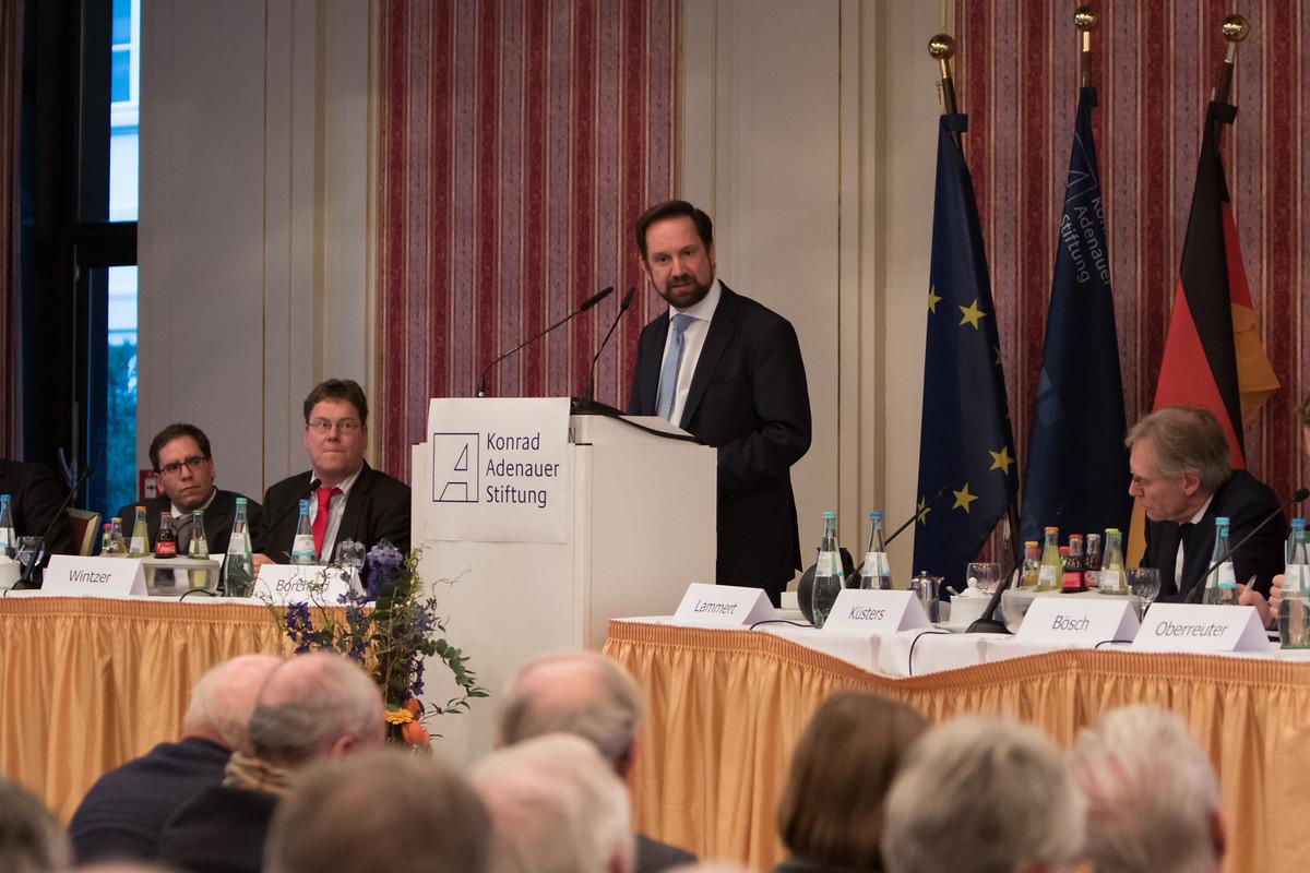 Im Mittelpunkt der Veranstaltung stand vor allem die im Oktober 1978 erfolgte Verabschiedung des Ludwigshafener Programms, des ersten Grundsatzprogramms der CDU, die sich in diesem Jahr zum 40. Mal jährt. Lammert würdigte dabei auch Helmut Kohls Rolle in diesem Reformprozess und machte darauf aufmerksam, dass die Entwicklung der Honoratioren- zur Mitgliederpartei wesentlich Kohls Werk sei. Zudem hätten die „68er“-Bewegung und der zeitweilige Aufschwung der NPD damals ein virulentes „Unbehagen an den etablierten Kräften“ zum Ausdruck gebracht, betonte Lammert. Insofern bestehe eine gewisse Parallele zur gegenwärtigen Situation.