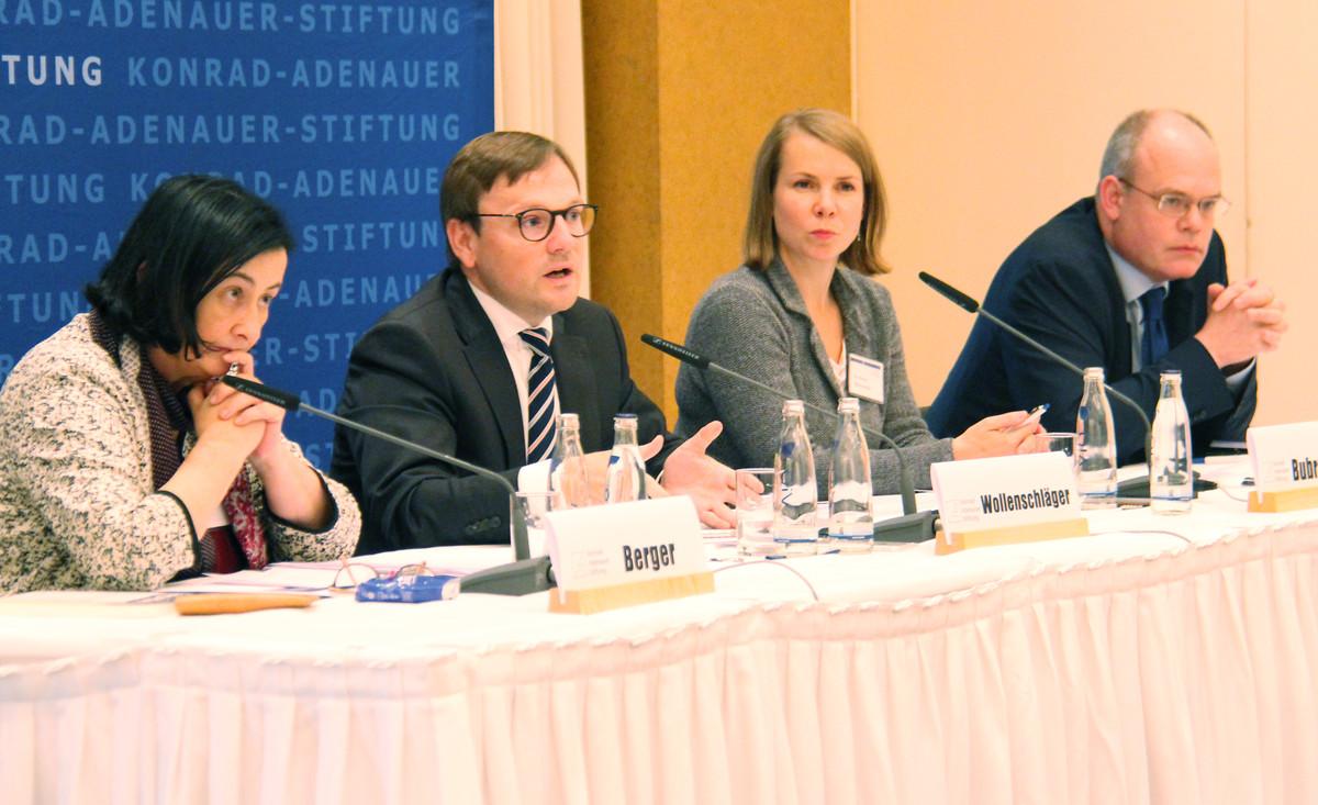 Im zweiten Panel zum Thema „Unionsbürgerschaft – Bedeutung, Tragweite und Grenzen“ diskutierten Johannes Laitenberger, Generaldirektor der DG Wettbewerb der Europäischen Kommission, Prof. Dr. Ferdinand Wollenschläger, Lehrstuhlinhaber für Öffentliches Recht, Europarecht und Öffentliches Wirtschaftsrecht der Universität Augsburg sowie Prof. Dr. Maria Berger, Richterin am Europäischen Gerichtshof das Spannungsfeld, in dem sich die Union, ihre Institutionen und auch die Gerichte derzeit bewegen.