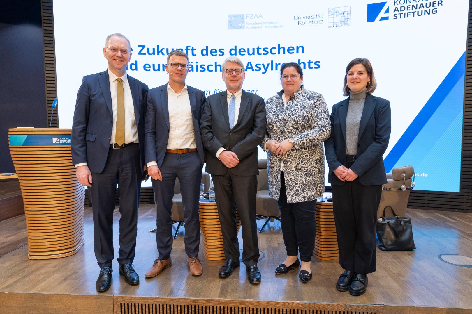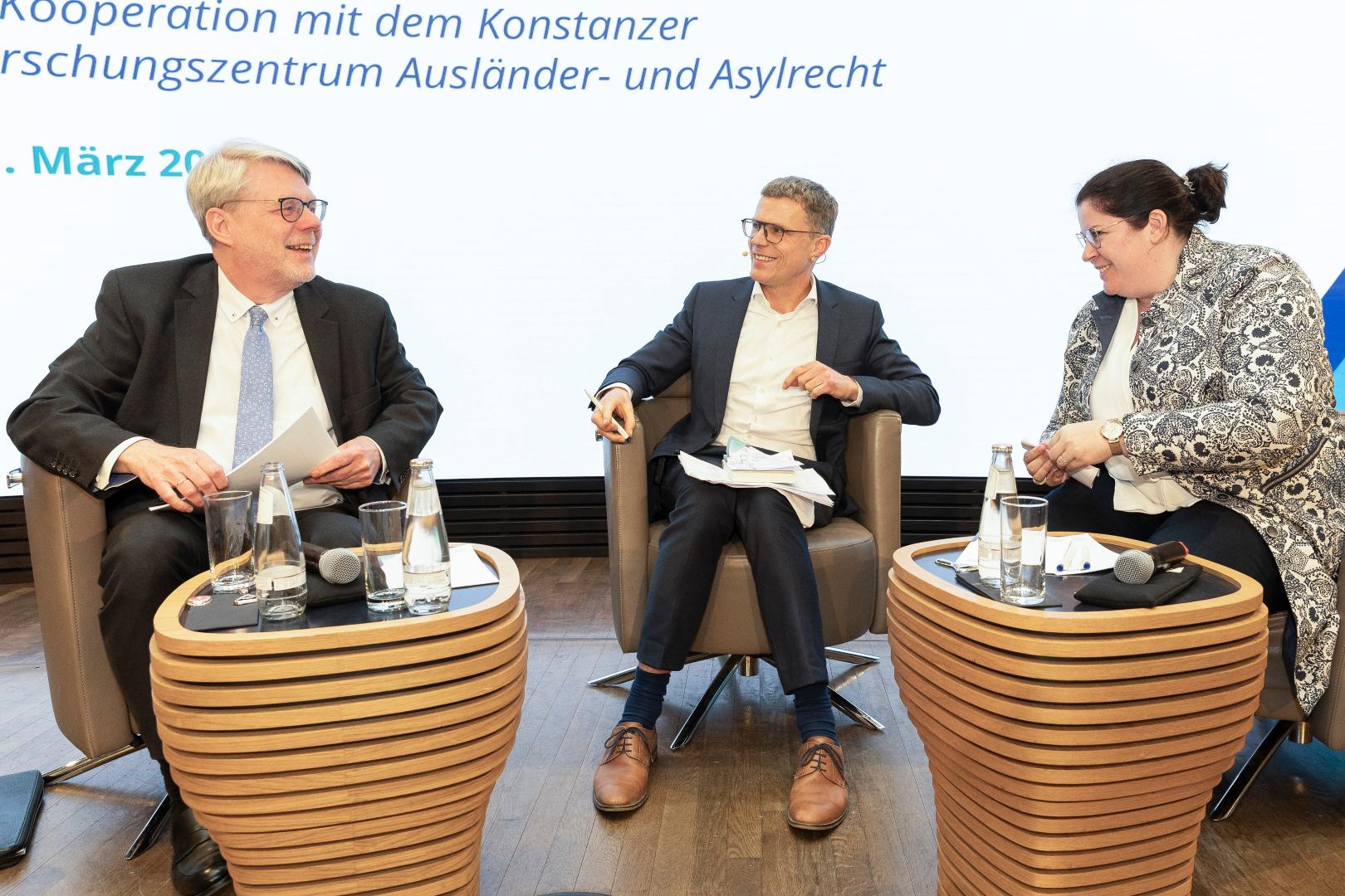 Im Anschluss moderierte Professor Dr. Daniel Thym, Lehrstuhlinhaber für Europarecht an der Universität Konstanz, eine lebendige und durchaus kontroverse Diskussion über die präsentierten Lösungsvorschläge. Im Zentrum stand dabei die Frage, wie ein verantwortungsvolles, krisenfestes und humanes Schutzsystems der Zukunft aussehen könne. Deutlich wurde dabei, dass die Ausgestaltung des europäischen und internationalen Asylrechts eine der großen Zukunftsaufgaben darstellt, die eine breite gesellschaftliche Debatte und Kompromisse aus der demokratischen Mitte erfordert.