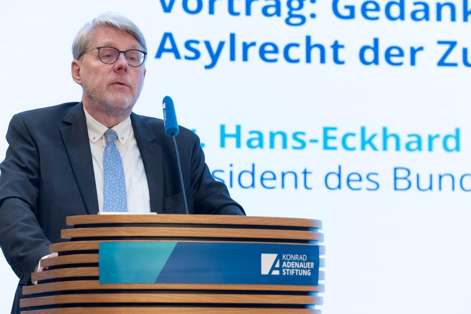 In einem Impulsvortrag teilte Dr. Hans-Eckhard Sommer, Präsident des Bundesamts für Migration und Flüchtlinge (BAMF), seine persönlichen Gedanken für eine grundlegende Neuaufstellung des europäischen Schutzsystems: Das gegenwärtige Asylrecht werde seiner Verantwortung nicht gerecht, Schutzsuchende mit den zur Verfügung stehenden, begrenzten Ressourcen zu helfen, ohne den demokratischen Rechtsstaat zu gefährden. Eine vernünftige und verantwortungsvolle Flüchtlingspolitik verlange jedoch, „den moralischen Wunsch nach dem Schutz von Menschen in Not mit den Bedürfnissen und Möglichkeiten unserer demokratischen Gesellschaft ins Gleichgewicht zu bringen“, so Sommer. Das deutsche und europäische Asylrecht stoße angesichts der heutigen internationalen Migrations- und Flüchtlingsbewegungen an seine Grenzen und sei von Dysfunktionalität und Zynismus geprägt, erläuterte Sommer. Es erlaube keine humane Steuerung von Flucht- und Migrationsbewegungen, sei gegenüber wirklich schutzbedürftigen Menschen verantwortungslos und gefährde den demokratischen Rechtsstaat, die äußere Sicherheit und den gesellschaftlichen Zusammenhalt.