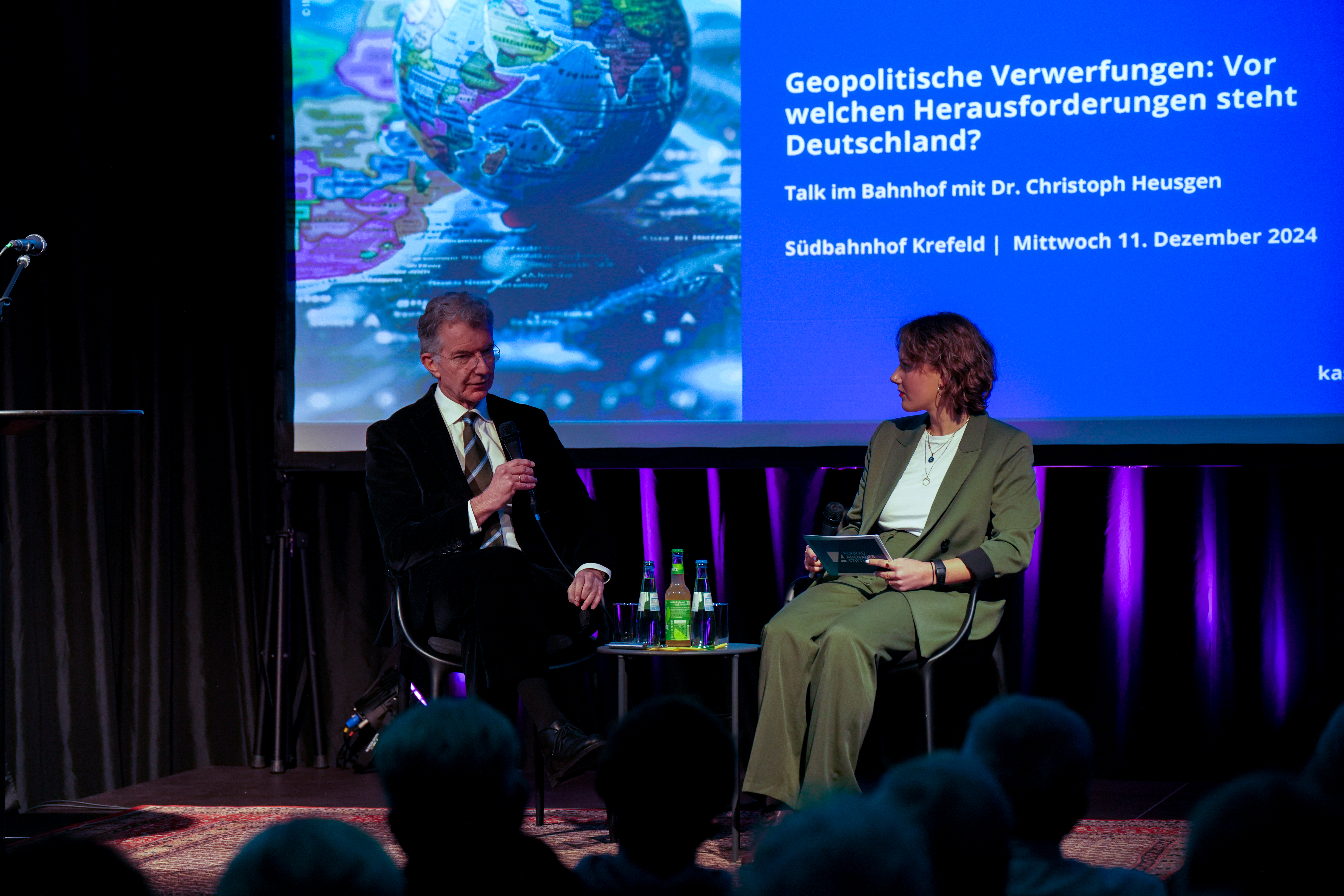 Im Gespräch mit dem Publikum ging es um die Frage nach dem gesellschaftlichen Zusammenhalt in Deutschland. Obwohl Heusgen einer Wiedereinführung der Wehrpflicht kritisch gegenübersteht, sprach er sich für ein gesellschaftliches Pflichtjahr aus, das jungen Menschen ein soziales Engagement ermöglicht. „Das würde nicht nur den Zusammenhalt stärken, sondern auch ein neues Bewusstsein für Verantwortung schaffen“, so Heusgen.