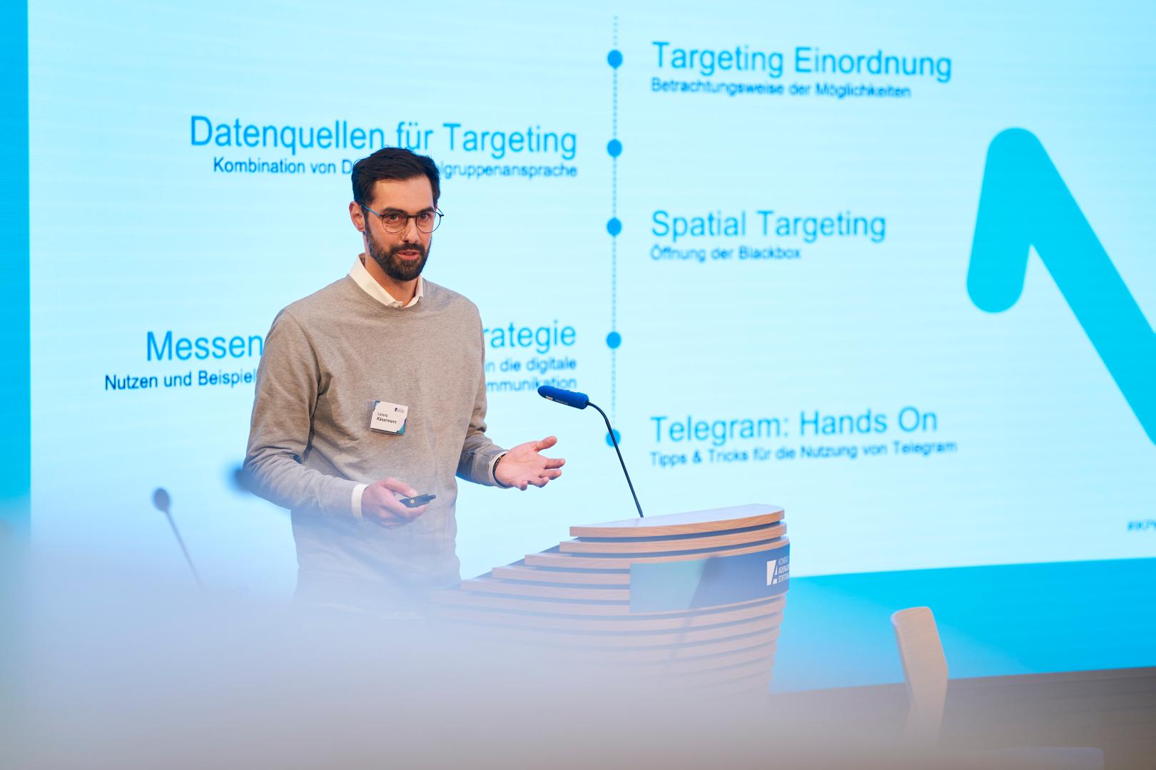 Wie es einfacher gelingen kann, reichweitenstrake Kommunikation als festen Bestandteil der politischen Arbeit in den Alltag einzubauen, zeigten die Breakout-Session am Montagnachmittag. Während die erste Runde den Schwerpunkt auf technische Lösungen legte, war die zweite Runde insbesondere ein Erfahrungsaustausch mit reichweitenstarken Kanälen. Vorgestellt wurden die erfolgreichsten Politiker-Kanäle der Union auf LinkedIn sowie auf TikTok: Moritz Leibinger erklärte das Kommunikationskonzept hinter dem LinkedIn-Kanal von Jens Spahn MdB, während Finn Werner über die Idee hinter dem TikTok-Kanal von Uwe Dorendorf MdL berichtete. Justus Langer und Lorenz Käsermann von Cosmonauts & Kings ergänzten das Informationsangebot zum Thema Reichweite mit Insights zum Targeting und zur Nutzung von Messengerdiensten am Beispiel von Telegram. Bei den technischen Tools wurden neben den Kampagnenplattformen CamBuilder und Civical noch die Einsatzmöglichkeiten der digitalen Meinungsforschung durch Civey sowie Google Trends vorgestellt.