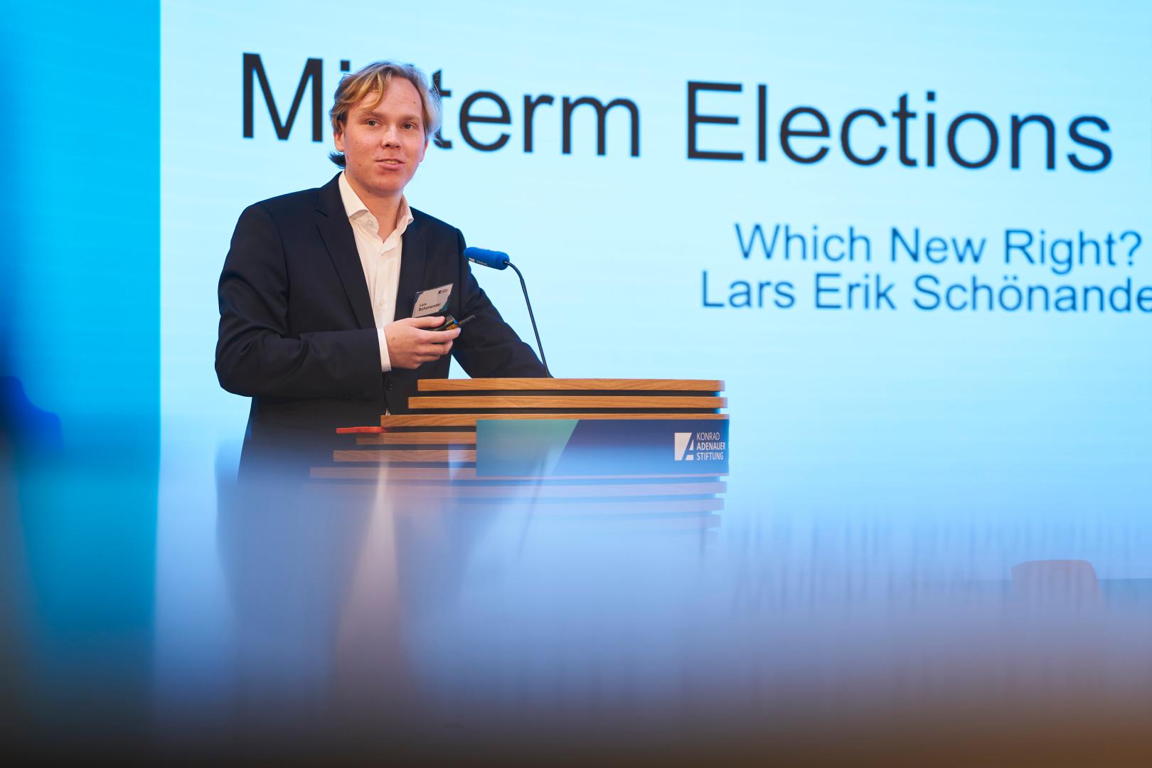 Einen vertieften Einblick in die politischen Debatten der USA gab auch Lars Schonander, Policy Technologist beim Lincoln Network, mit seinem Rückblick auf die Midterm-Wahlen. Obwohl die extremen Kandidaten mehrheitlich von den Wählern abgestraft wurden, ständen sich in den USA zwei gleichgroße, gesellschaftliche Blöcke unversöhnlich gegenüber, erklärte er die Wahlergebnisse. Schonander wies insbesondere daraufhin, dass eine große Gefahr von der Gruppe der sogenannten „Deniers“ ausgehe. Sie hätten bereits 2020 die Legitimität der Präsidentschaftswahl geleugnet, durch ihre Wiederwahl hätten sie nun die Möglichkeit, die Demokratie in den USA von innen auszuhöhlen.