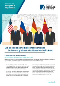 Die Reihe informiert in konzentrierter Form über Analysen der Konrad-Adenauer-Stiftung zu relevanten aktuellen Themen. Die einzelnen Ausgaben stellen zentrale Ergebnisse und Empfehlungen eigener und externer Expertinnen und Experten vor, bieten Kurzanalysen von rund fünf Seiten und nennen KAS-Ansprechpartnerinnen.