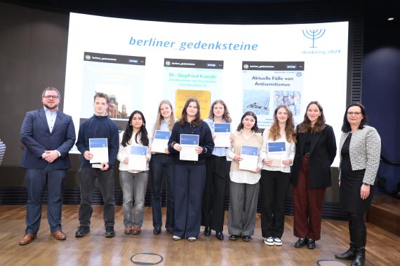 Der mit 3.000,- € dotierte erste Platz ging an die Schüler des Städtischen Gymnasiums Herten in Nordrhein-Westfalen mit ihrem Projekt „Zweitzeugen“.