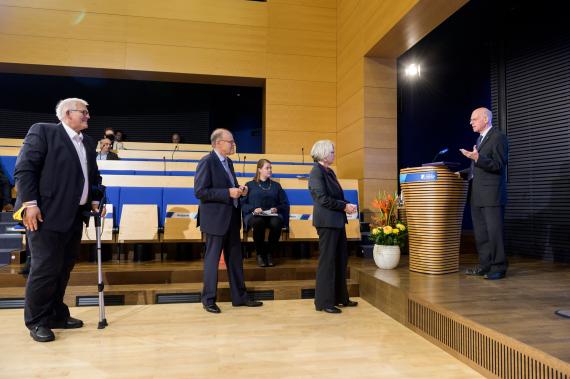 Zum Abschluss versammelten sich Preisträger, Redner und Jury-Mitglieder auf der Bühne. Marcus Merk