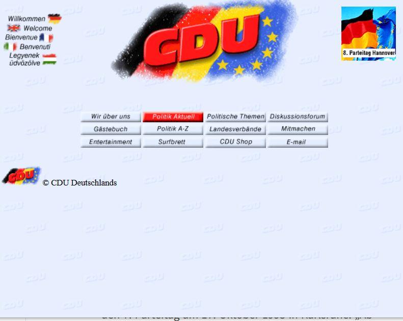 „Es war ein NetScape-Server und die Infrastruktur war noch recht bescheiden. Die Internetanbindung lag bei 2 Mbit/s, heute unvorstellbar.“, berichtet ein Zeitzeuge, der damals vor Ort den Server der CDU mitbetreute. Zumindest das Layout der Seiten von damals ist durch eine etwas später erfolgte Speicherung im Internet Archive zu finden.