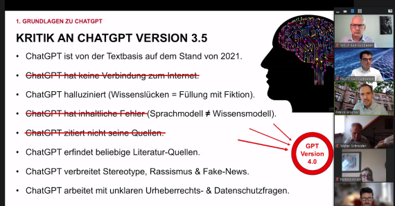 Was ist eigentlich "Künstliche Intelligenz", wie funktioniert sie und wie lässt sie sich sinnvoll in den Unterricht integrieren? Mit Dr. Patrick Bronner, Lehrer am Freiburger Friedrich-Gymnasium und Fachberater für Unterrichtsentwicklung gelang es dem Regionalbüro Südbaden, einen engagierten Praktiker und kompetenten Experten dieser komplexen Thematik zu engagieren. Er thematisierte die Chancen und Risiken der Technologie, von der ChatGPT nur die Spitze eines täglich wachsenden Eisbergs ist.