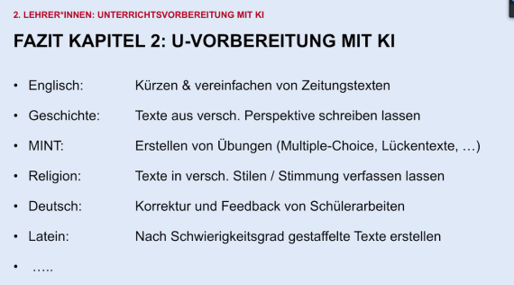 4. Lernen trotz KI - also der Reflexions- und Diskussionsmöglichkeiten; etwa auf die Frage, warum man noch lernen solle.