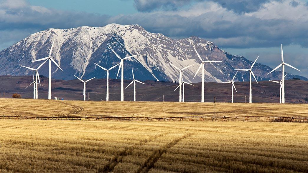 Windräder im Vorgebirge der Rocky Mountains. royalty free (iStockPhoto, Bildnr. 465937749)