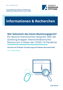 Zwei Intensivmediziner, der deutsche Professor Christian Jung und der französische Professor Bertrand Guidet, sprechen über ihre Erfahrungen mit der Corona-Pandemie und den Lehren, die bislang für die Intensivmedizin gezogen wurden – und die noch zu ziehen wären. Die Zwischenbilanz der beiden Intensivmediziner lautet: Kriterien für die Priorisierung von Patienten bedürfen einer breiten gesellschaftlichen Debatte und letztlich demokratischer Legitimation.
