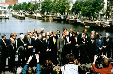 1997: Vertrag von Amsterdam (in Kraft getreten 1999): das Europäische Parlament wird bei der Entscheidungsfindung neben dem Ministerrat gleichberechtigt, d.h. institutionell gestärkt; Einführung einer Flexibilitätsklausel, die Anwendungsfälle zulässt, bei denen nicht alle EU-Staaten beteiligt sein müssen; Ausbau der Zusammenarbeit in den Bereichen Justiz und Inneres.