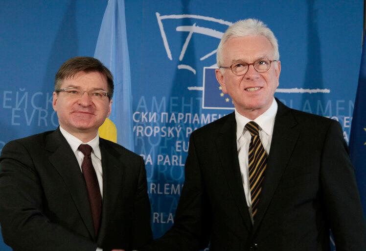Hans-Gert Pöttering, Präsident des Europäischen Parlaments, empfängt den stellvertretenden Ministerpräsidenten der Ukraine Hryhorij Nemyria. Aufnahme vom 8. Januar 2009. European Union 2009 - EP