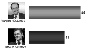 - Auch bei den Wahlabsichten für die 2. Runde liegt François Hollande klar vor Nicolas Sarkozy (59-57:43-41).