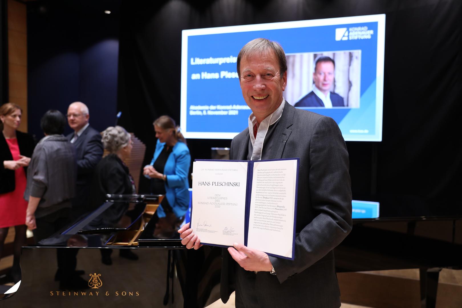 Hans Pleschinski empfängt den Literaturpreis der Konrad-Adenauer-Stiftung