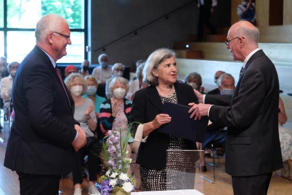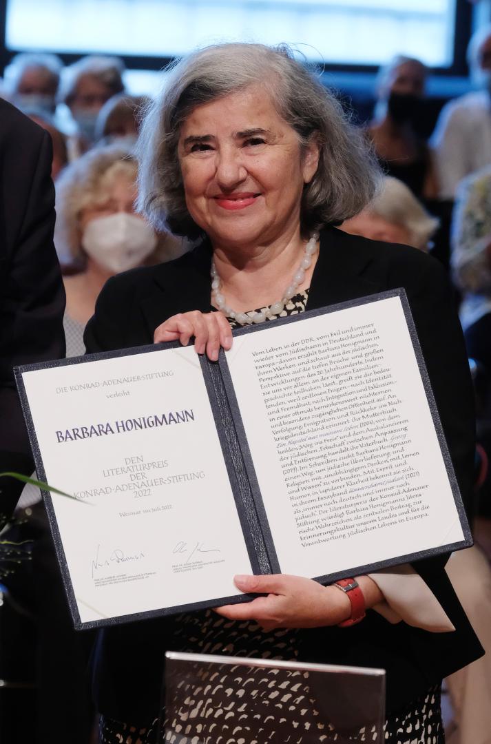 Vertrauen in die jüdische Biographie, Vertrauen in die deutsche Sprache und die europäische Kultur: Das hob der Stiftungsvorsitzende Prof. Dr. Norbert Lammert bei der Verleihung des Literaturpreises der Konrad-Adenauer-Stiftung an Barbara Honigmann am 3. Juli 2022 hervor. Die mit 20.000 Euro dotierte Auszeichnung wurde – nach zweijähriger Corona-Pause – wieder im Musikgymnasium Schloss Belvedere in Weimar verliehen. Die Laudatio hielt Prof. Dr. Raphael Gross, Präsident der Stiftung Deutsches Historisches Museum in Berlin (zum Zeitpunkt der Preisverleihung).