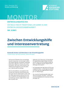 Mit der Reihe „Monitor Entwicklungspolitik“ widmet sich die Konrad-Adenauer-Stiftung der Rolle nicht-traditioneller Geber in der Entwicklungszusammenarbeit. Dieses Mal werfen wir einen Blick auf Russland, das im Rahmen seiner Entwicklungspolitik einen Fokus auf nahestehende Staaten im postsowjetischen Raum und für russische Interessen wichtige Staaten im Rest der Welt legt.