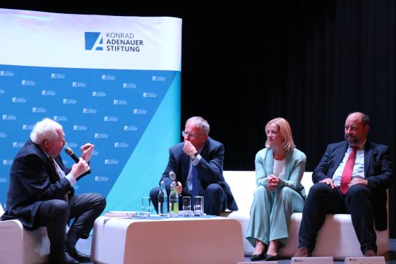 20 Jahre KAS Thüringen am 30. Januar 2013 mit Ministerpräsident a.D. Dieter Althaus, Maja Eib, Ministerpräsidentin a.D. Christine Lieberknecht, Ministerpräsident a.D. Prof. Dr. Bernhard Vogel und Dr. Melanie Piepenschneider