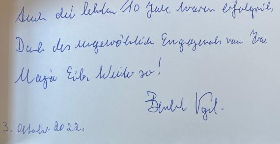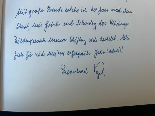 Gästebucheintrag von Prof. Dr. Bernhard Vogel am 3. Oktober 2022