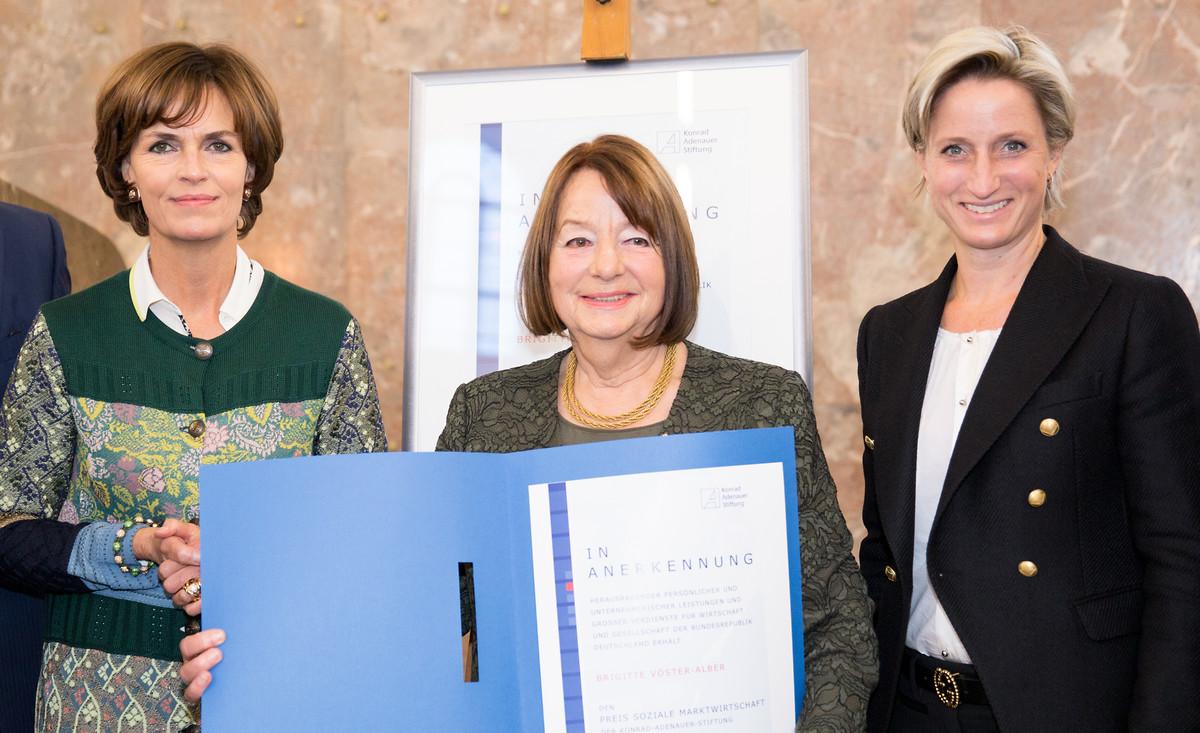 Jurybegründung: „Mit Brigitte Vöster-Alber zeichnet die Konrad-Adenauer-Stiftung eine herausragende und vorbildliche Unternehmerin aus. Im Jahr 1968 übernahm sie die Geschäftsführung des 1863 gegründeten Unternehmens GEZE GmbH in Leonberg und machte daraus ein weltweit führendes Unternehmen in der Gebäudetechnikbranche.