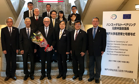 Die staatliche Universität Kobe gehört zu den renommiertesten Hochschulen Japans. Vor Hans-Gert Pöttering erhielten seit dem Jahr 2000 bereits andere herausragende Persönlichkeiten des politischen Lebens in Europa wie Richard von Weizsäcker, José Manuel Durão Barroso und Herman van Rompuy die Ehrendoktorwürde.