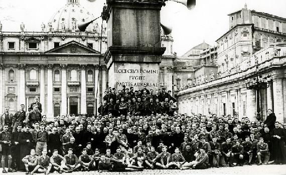 Im Grunde bin ich durch eine Reihe von Zufällen dazu gekommen. Ich lebte damals noch in Gießen. Dort gab es nur ganz wenige Katholiken. Im Religionsunterricht waren wir fünf Schüler, den Religionsunterricht hielt der Pfarrer der einzigen Pfarrgemeinde, die es damals gab. Nach Kriegsende, bedingt durch die vielen Zerstörungen, war jeglicher Kontakt zur Pfarrei abgerissen. In der Schule aber gab es einen Klassenkameraden, der mich auf die katholische Jugend und die Kirche ansprach. Dann erschien eines Tages der Geistliche für die Jungengemeinschaft, Regens Kuch aus Hadamar. Er drückte mir ein Hirschberg-Programm in die Hand und sagte, ich müsse eine Gruppe an der Pfarrei in Gießen gründen. Diese Gruppe entstand dann tatsächlich, wobei das Hirschberg-Programm ausschlaggebend für mich war. 1949 ging ich dann nach München. Dort war die Situation völlig anders, weil der Bund dort stärker verankert war. Ein herausragendes Erlebnis war der 30. Geburtstag des Bundes Neudeutschland im selben Jahr, der mit einem großen Zeltlager in Fulda begangen wurde. Ein Jahr später sind wir von München mit einem Sonderzug nach Rom gefahren. Das war ein ungewöhnliches Ereignis, da ich zum ersten Mal in meinem Leben über die deutsch-schweizerische Grenze kam. Das war vorher nicht möglich. Für alle blieb diese Fahrt nach Rom in lebhafter Erinnerung, und man fragte sich noch viel später: Warst Du auch dort damals?