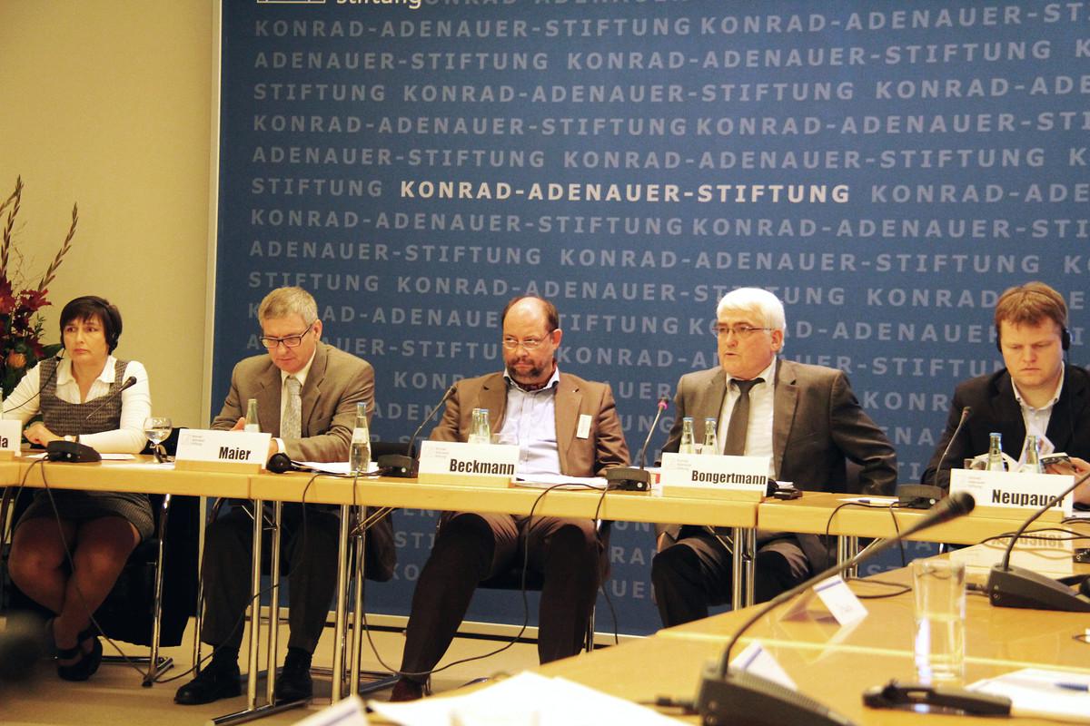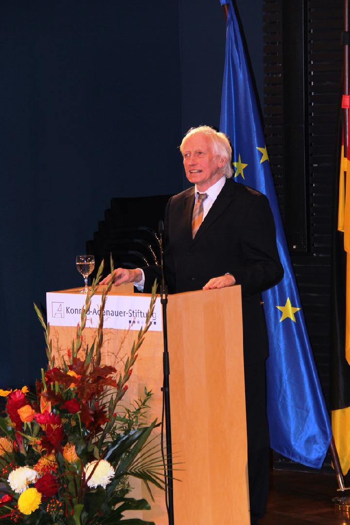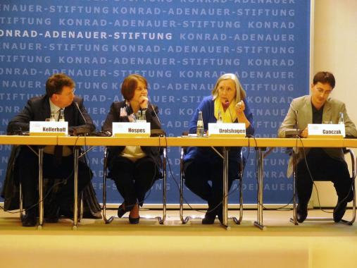 In ihrer Begrüßung betonte die stellvertretende Vorsitzende der Konrad-Adenauer-Stiftung, Hildigund Neubert, dass das geeinte Europa mehr sei als ein Instrument zur Wohlstandsmehrung. Gerade angesichts der gegenwärtigen Krisen sei es dringend notwendig, sich neben den materiellen auch immer wieder den ideellen Voraussetzungen des Zusammenlebens der europäischen Völker zu widmen. Dieser Aufgabe fühle sich die Konrad-Adenauer-Stiftung, die sich als Europa-Stiftung verstehe, in besonderer Weise verpflichtet. Einen Beitrag zu einem gemeinsamen europäischen Geschichtsbild wolle auch das in Vorbereitung befindliche und vom Vorsitzenden der KAS, Hans-Gert Pöttering, angeregte Haus der Europäischen Geschichte leisten.