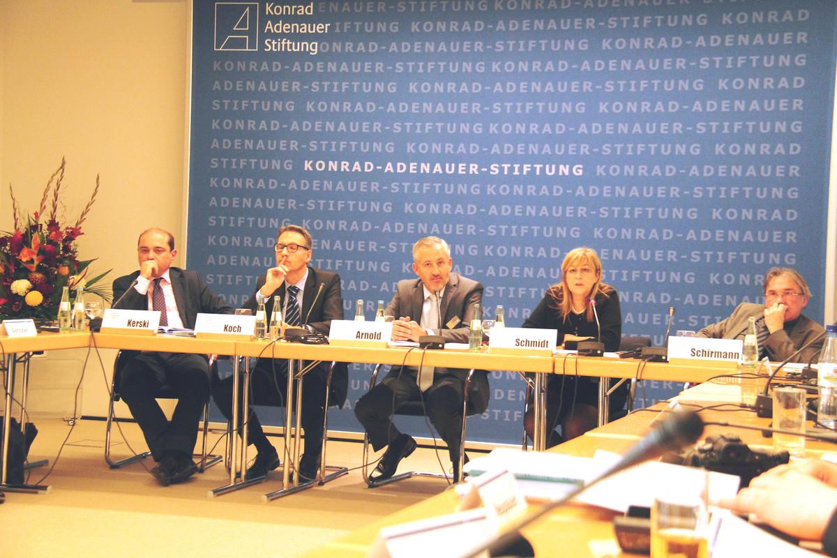 Den zweiten Teil der Veranstaltung bildete ein ganztägiger Workshop am 3. November. Hier ging es in kleinerer Expertenrunde in vier von Mitgliedern der AG Zeitgeschichte moderierten Sektionen um eine Bestandsaufnahme in den Bereichen Wissenschaft, Schulen, Museen und Öffentlichkeit. Die Beiträge der Expertinnen und Experten zu Polen, Italien, Frankreich, Deutschland, Finnland, der Slowakei, Ungarn und Norwegen verdeutlichten die z. T. immer noch sehr unterschiedlichen nationalen Sicht- und Herangehensweisen, die sich allerdings simplifizierenden Ost-West-Mustern entziehen. Deutlich wurde aber auch, dass es in immer stärkerem Maße internationale Verflechtungen und Perspektiven gibt, v. a. im Bereich der Wissenschaft und der Museumsarbeit, ansatzweise auch im Schulunterricht. Damit sei, wie Dr. Alexander Brakel, stellvertretender Leiter der Hauptabteilung Wissenschaftliche Dienste/Archiv für Christlich-Demokratische Politik und Leiter der AG Zeitgeschichte, abschließend feststellte, ein wichtiger Schritt zu mehr Gemeinsamkeit und gegenseitigem Verständnis vollzogen.