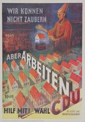 Der damalige Wahlkampf, auf den Straßen waren die Spuren physischer wie psychischer Zerstörungen durch den Zweiten Weltkrieg noch deutlich sichtbar, wurde in erster Linie themenbezogen mittels Film-, Rundfunk-, Zeitungs- und nicht zuletzt auch Plakatwerbung geführt. Hierzu war ein hohes Maß an Improvisationsfähigkeit notwendig, da die Wahlkampforganisation noch weniger straff war.