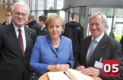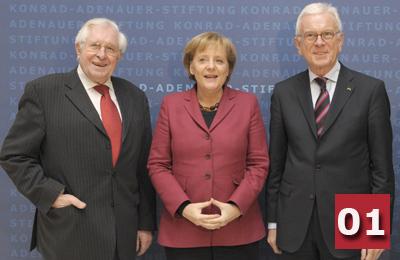 Mit einer feierlichen Amtsübergabe vor 400 geladenen Gästen verabschiedete die Konrad-Adenauer-Stiftung in Berlin ihren bisherigen Vorsitzenden Prof. Bernhard Vogel und hieß gleichzeitig ihren neuen Vorsitzenden Dr. Hans-Gert Pöttering willkommen. Bundeskanzlerin Dr. Angela Merkel würdigte den scheidenden Vorsitzenden als Brückenbauer, der mit seiner Arbeit in der Stiftung tiefe Spuren hinterlassen hat. Dem neuen Vorsitzenden wünschte sie viel Erfolg für seine Aufgabe und versprach eine gute Zusammenarbeit.