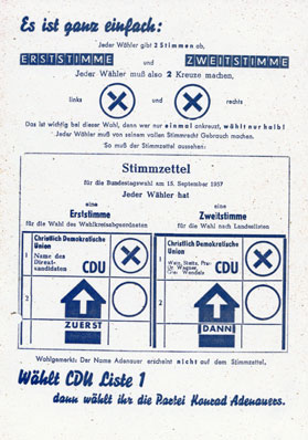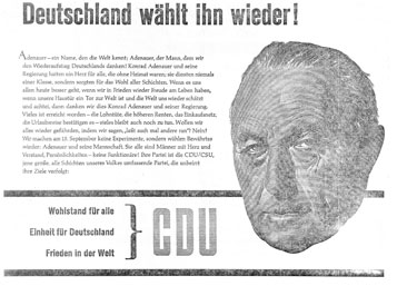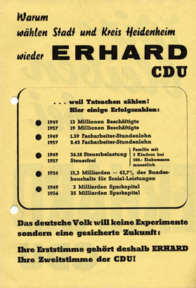 Sehen Sie zwei Wahlwerbespots der CDU aus dem Jahre 1957: Keine Experimente! und Der Wirtschaftswunderbaum