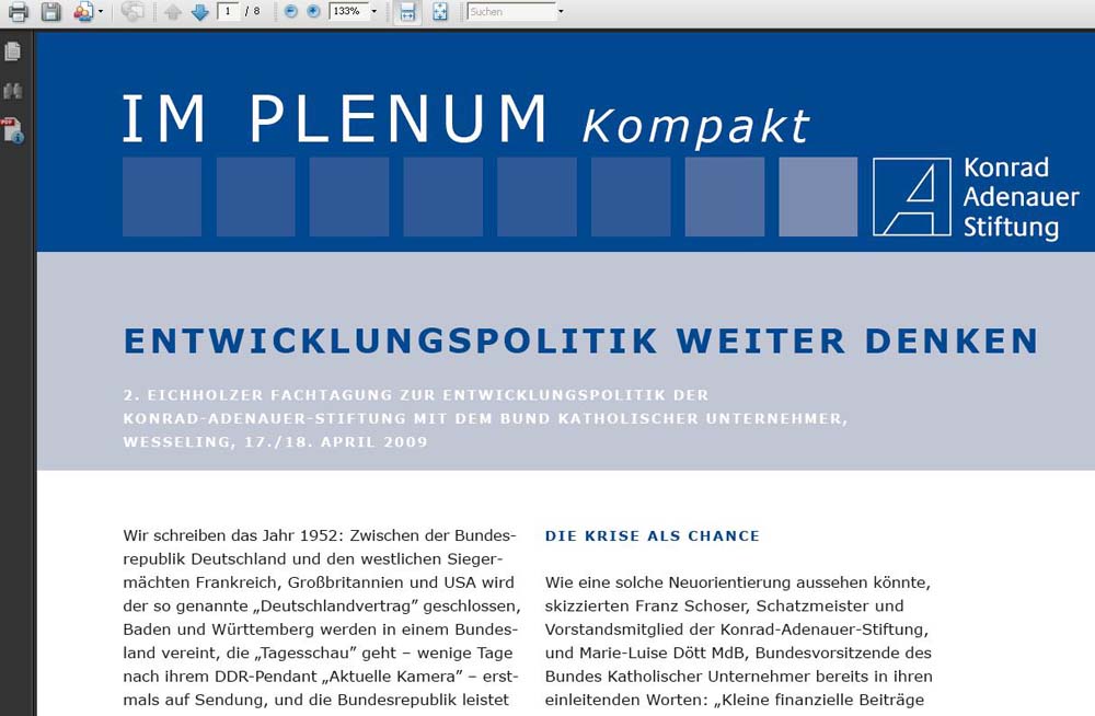- Links auf Publikationen der KAS, die parallel zur Papierausgabe auch im Internet erschienen sind oder ausschließlich als Online-Ausgabe veröffentlicht wurden. Die angeklickten Links öffnen sich in einem zusätzlichen Browserfenster.
