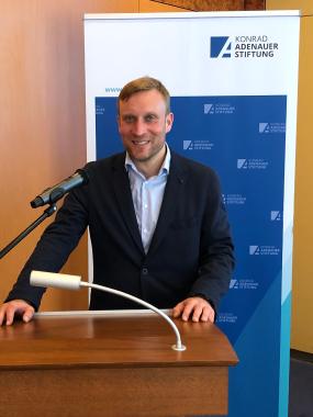 Dr. Benjamin Höhne erläuterte beim Wiesbadener Tischgespräch am 8. April 2019 seinen Befund, das vom Grundgesetz ausdrücklich befürwortete „Erfolgsmodell Parteiendemokratie“ unterlaufe derzeit einen tiefgreifenden Wandel durch den Aufstieg neuer populistischer Bewegungen, der im europäischen Ausland erheblich deutlicher spürbar sei.