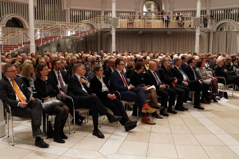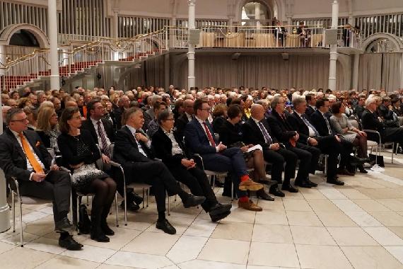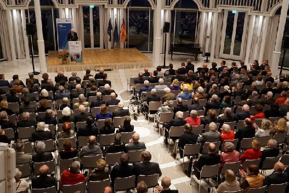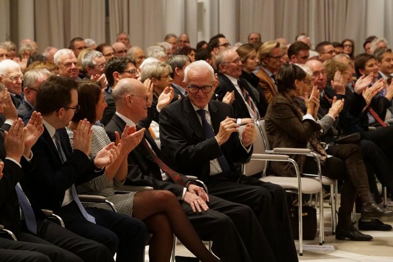Den Deutschen komme quantitativ und qualitativ eine besondere Verantwortung zu; und hier schließe sich auch wieder der Kreis zum Grundgesetz und zur Stabilität politischer Systeme: Wer hätte vor 70 Jahre daran geglaubt, dass Deutschland wieder auf eigenen Füßen steht, prosperierend, wiedervereint im Einvernehmen mit unseren Nachbarn? Ein Wunder der Geschichte, die glücklicherweise zu unseren Lebzeiten stattgefunden hat. Und das keineswegs selbstverständlich ist. Mit den Worten Barack Obamas warnte Lammert: „Die Demokratie ist immer dann am meisten gefährdet, wenn die Menschen beginnen, sie für selbstverständlich zu halten.“ Heute sterben Demokratien nicht mehr durch Militärputsche, Bürgerkriege und externe militärische Angriffe, heute wird die Demokratie durch Wahlen gefährdet, deren Ergebnisse Gesetze ermöglichen, die die Unabhängigkeit der Justiz und die Meinungsfreiheit beschneiden. In einem aufrüttelnden Plädoyer rief Lammert den Gästen zu: „Das ist unser Land, unsere Demokratie. Für die sind wir verantwortlich – und wir, das heißt: Jeder einzelne von uns!“