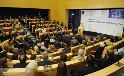 Der Vorsitzende der Konrad-Adenauer-Stiftung, Prof. Dr. Bernhard Vogel, hatte zuvor von einer „der Zukunft zugewandten Epoche“ gesprochen, die mit Verkündung des Grundgesetzes begonnen habe.