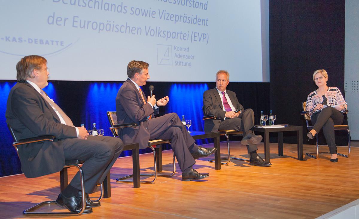 Zuvor hatte Hans-Gert Pöttering, ehemaliger Präsident des Europäischen Parlaments und Vorsitzender der Konrad-Adenauer-Stiftung, seine Hoffnung betont, dass es zu keinem Brexit komme: „Wir hoffen, dass die Wähler im Vereinigten Königreich am Donnerstag entscheiden, dass dieses so wichtige Land weiterhin Mitglied in der Europäischen Union bleibt.“ Mit Blick auf die Zukunft Europas, müsse die Frage gestellt werden, „welche EU brauchen wir und nicht welche wollen wir“. Denn zu Europa gehöre auch Heimat, die den Ausgangspunkt bilde. Natürlich sollte sich jeder zu seiner Nation bekennen, aber Pöttering warnte davor, sie nicht über alles zu stellen. „Heimat, Vaterland, Europa und Verantwortung für die Welt gehören zusammen“, sagte Pöttering. Nur in dieser Kombination könne der Weg in eine solidarische, vereinte Zukunft beschritten werden.