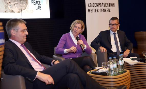 Nicht nur die konkrete, unmittelbare humanitäre Hilfe am Boden sei wichtig. Auch politische Prozesse müssten angestoßen werden. Aber im Gegensatz zu den Bemühungen in Afghanistan Stünden im Irak nicht die Demokratisierung, sondern die Stabilisierung im Vordergrund: „In Afghanistan hatten wir zu hohe Ansprüche, jetzt sind wir in vielem besser geworden“, resümierte Ederer und Kiesewetter stimmte ihm zu: „Im Irak muss die Demokratie folgen, wenn alles andere stimmt.“ Und zur Stabilisierung gehört auch Versöhnung. Ein Ziel sei es, in Mosul alle Akteure – Sunniten, Schiiten und Kurden – konstruktiv in einem Stabilisierungsrat zusammenarbeiten zu lassen. „Wir arbeiten an nicht diskriminierenden, inklusiven Verwaltungsstrukturen“, so Ederer. Den Wiederaufbau der Infrastruktur und die Förderung von Beschäftigung hat das Bundesministerium für wirtschaftliche Zusammenarbeit und Entwicklung, kurz BMZ, übernommen. Für Roderich Kiesewetter ist es „beeindruckend, wie die Ministerien dort zusammenarbeiten, um Hilfe vor Ort zu gewährleisten“.