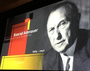 Die Durchsetzungsfähigkeit und Weitsicht Konrad Adenauers verdeutlichte Ingo Espenschied, Diplom-Politologe und Experte für deutsch-französische und europäische Beziehungen, anhand verschiedener Stationen seines politischen Lebensweges. Espenschied schilderte unter anderem die Standhaftigkeit Adenauers gegen das Erstarken der nationalsozialistischen Bewegung, seine Absetzung als Kölner Oberbürgermeister durch das NS-Unrechtsregime, und er zeigte wie Adenauer schließlich Zuflucht in der Benediktinerabtei Maria Laach fand, als sein Leben in Gefahr war.