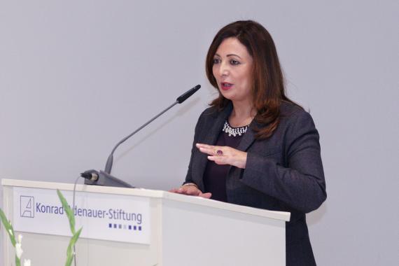 So konnten zur rechten Zeit die Konflikte ausgeschaltet werden. Gesetze mussten neu aufgesetzt werden und die Tunesier mussten sich überlegen, wie man Politik neu angehen und die Bürger einbinden kann. Und zwar mit einem Ziel: Das Gemeinwohl sollte stets im Vordergrund stehen. Das halbe Jahr der Erneuerung, wie Bouchamaoui das Engagement des Quartetts nennt, war geprägt von Dialog. Es ist ihr wichtigster Begriff an diesem Abend in der Akademie der Konrad-Adenauer-Stiftung, aber es ist auch das wichtigste Instrument ihrer Arbeit: "Nur durch Dialog soll das Volk zum Frieden gelangen," denn Werte müsse man auf einem freien Weg erhalten.