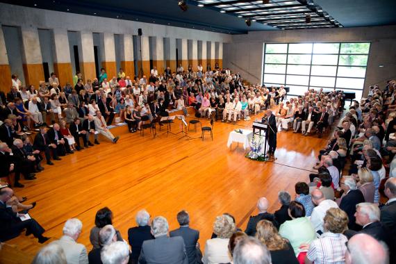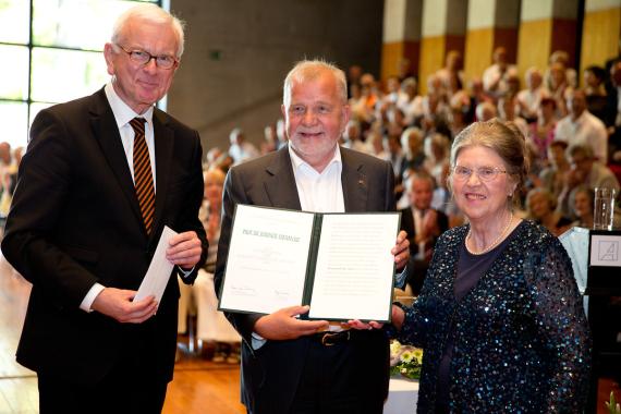 Der diesjährige Preisträger ist bekannt und berühmt geworden durch eine stattliche Reihe von Biographien, in denen er die Geschichte deutscher Dichter und Denker vom 18. bis 20. Jahrhundert abschritt. Dabei verbindet er seine Bücher mit europäischem Gedankengut. „Deutsche Biographien und europäische Kultur gehören für Rüdiger Safranski untrennbar zusammen“, sagte Dr. Hans-Gert Pöttering, Vorsitzender der Konrad-Adenauer-Stiftung und ehemaliger Präsident des Europäischen Parlaments in seiner Eröffnungsrede. Zugleich gebe er uns eine zeitgemäße Antwort auf die Frage, wie viel Europa die Klassiker der deutschen Kultur heute vertrügen. Safranski verbinde Lebensgeschichte mit Geistesgeschichte in seinen Biographien ähnlich wie ein Essayist.