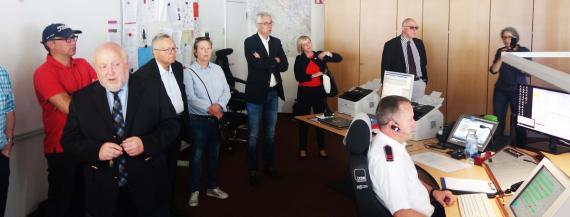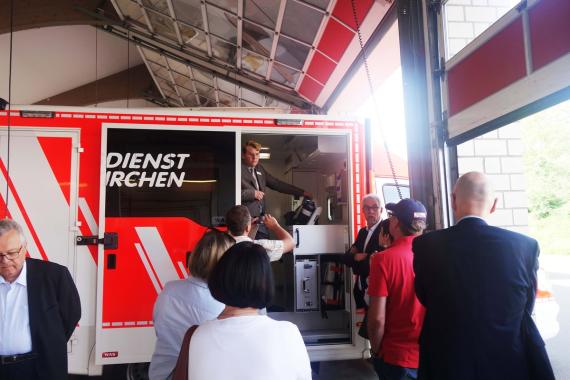 Der zweite Tag der Konferenz begann in Euskirchen: Landrat Günter Rosenke begrüßte als Schirmherr der Konferenz in der Kreisverwaltung, bevor Udo Crespin, Leiter der Gefahrenabwehr, über notärztliche Versorgung und Telenotarzt sprach. Die Herausforderung, in einem Flächenkreis die Anforderungen der notärztlichen Versorgung zu gewährleisten und trotz der zurückzulegenden Entfernung und steigenden Anforderungen in angemessener Zeit vor Ort zu helfen, hat zum Pilotprojekt Telenotarzt geführt. Der Notarzt sitzt dabei an einem Bildschirm in der Zentrale und überblickt per Kameraübertragung durch den Rettungsdienst den Einsatz. Eine Software überträgt die für Diagnose und Ersthilfe wichtigen Daten. So kann der Notarzt Anweisungen zur Behandlung geben oder entscheiden, dass doch noch ein Notarzteinsatz vor Ort notwendig ist. 2016 hat Euskirchen als erster Kreis in NRW die Funktionalität und Akzeptanz des Systems in der Praxis getestet. Der Telenotarzt kann keinen fahrenden Notarzt ersetzen. Bei einem Verkehrsunfall mit Schwerverletzten beispielsweise ist die Präsenz eines Notarztes vor Ort nötig. Aber mit Hilfe der Technik können trotz der enormen Steigerung der Notarzteinsätze vorhandene Personalressourcen optimiert werden, ohne dass die notärztliche Versorgung leidet. Crespin betonte die Bedeutung des Ehrenamts und sieht hier die Notwendigkeit, Anreize zu schaffen, beispielsweise durch eine berufliche Qualifizierung. Im Anschluss an den packenden Vortrag besuchten die Teilnehmenden die Leitstelle und besichtigten die Telenotarzt-Technik am Einsatzfahrzeug.