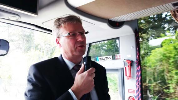 Unterwegs nach Bad Münstereifel stellte Achim Blindert, Geschäftsbereichsleiter Umwelt und Planung des Kreises Euskirchen, Beispiele für eine flexiblere Mobilität im ländlichen Raum vor. Alle Busfahrten mit einer Besetzung von weniger als fünf Fahrten sind demnach auf Taxibus umgestellt worden. Fahrplan und Linienweg sind wie beim normalen Bus vorgegeben, aber der Fahrgast muss den Taxibus bestellen und somit verursacht dieser auch nur bei Benutzung Kosten. In Ergänzung zum Taxibus fährt in den Abendstunden und am Wochenende das Anrufsammeltaxi. Auch das muss vorbestellt werden, aber es gibt keinen Linienweg, sondern Bedienungsbereiche. Außerdem fährt dieses Taxi die Fahrgäste nicht nur bis zur Haltestelle, sondern bis zur Haustür. Zur Vereinheitlichung sollen die Anrufsammeltaxis in das Taxibussystem integriert werden. Die ÖPNV-Angebote müssten zudem noch viel besser vermarktet werden, so Blindert, damit sie auch genutzt würden. Zudem müssten in Zukunft die Verfügbarkeiten am Wochenende verbessert und ein Fahrradverleihsystem aufgebaut werden.