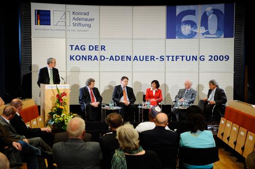 Auch in ihren Wünschen für den weiteren Umgang der Deutschen mit ihrem Grundgesetz zeigten sich die Diskutanten weitestgehend einig. „Die Praktikabilität muss die Theorie ergänzen, die Verfassung muss also weiter mit Leben gefüllt werden“, sagte Meinungsforscher Schöppner. Und Philipp Mißfelder zeigte sich überzeugt, dass die „Erfolgsgeschichte des Grundgesetzes“ auch über die anstehenden Probleme hinaus fortgeschrieben werden kann, wenn dabei auch die Lehren der vergangenen 60 Jahre berücksichtigt werden.