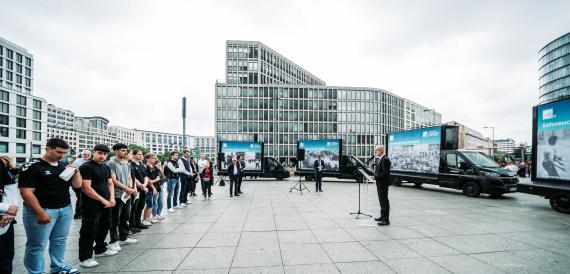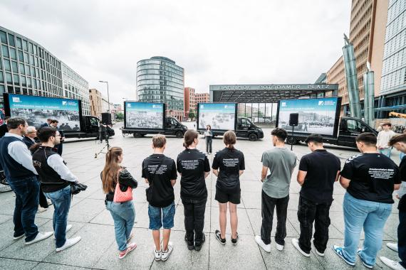 Im Anschluss an die Rede trugen Berliner Schülerinnen und Schüler unter dem Motto „Für die Freiheit!“ Auszüge aus Zeitzeugenberichten vom 17. Juni 1953 sowie Namen der Opfer des SED-Regimes vor, um uns mit den persönlichen Erfahrungen, dem Widerstand und dem Leid der Menschen von damals zu verbinden und uns daran zu erinnern, welchen Preis viele für Freiheit und Demokratie zahlen mussten. Um die Erinnerung an den 17. Juni 1953 und an das mutige Aufbegehren der Bürgerinnen und Bürger in der DDR in die gesamte Stadt und das Bewusstsein vieler Menschen zu tragen, starteten nach Ende der Gedenkveranstaltung mehrere Fahrzeuge am Potsdamer Platz mit großen Plakaten, die Fotos der damaligen Orte und Ereignisse zeigen.
