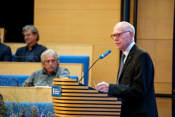 Der politischen Diskussionsrunde ging ein umfassendes wissenschaftliches Symposium am Nachmittag voraus, bei dem die Teilnehmer und Teilnehmerinnen von Dr. Alexander Wolf, dem Leiter des Hauptstadtbüros der Hanns-Seidel-Stiftung, und Dr. Michael Borchard, dem Leiter der Hauptabteilung Wissenschaftliche Dienste / Archiv für Christlich-Demokratische Politik, begrüßt wurden. Prof. Dr. Horst Möller (München), würdigte in seinem einleitenden Vortrag die Zusammenarbeit von CDU und CSU im Deutschen Bundestag und den Beitrag der CDU/CSU-Fraktion zum Aufbau der deutschen Demokratie nach dem Zweiten Weltkrieg. Ohne die Kooperation der beiden Parteien sei die Wahl Adenauers zum ersten Bundeskanzler nicht möglich gewesen, so Möller. Insofern verdankten sich auch wesentliche politische Grundsatzentscheidungen – die Westbindung, die Einführung der Sozialen Marktwirtschaft und die Europäische Einigung – dem Miteinander der C-Parteien. Natürlich habe es in den 75 Jahren der Zusammenarbeit auch spannungsreiche Phasen gegeben, so Möller, man denke an den Kreuther Trennungsbeschluss von 1976 oder die Migrationskrise 2015/2016. Dennoch funktioniert die Zusammenarbeit auch aus der Sicht des Geschichtswissenschaftlers „überwiegend reibungslos und effizient“, und zwar auch aufgrund der „Integrationsleistung der beiden Vorsitzenden“. Schließlich benötigen beide Partner einander, so Möller: „Ohne CSU könnte die CDU schwerer einen Kanzler stellen, ohne CDU hätte die CSU in der Bundespolitik weniger Bedeutung.“